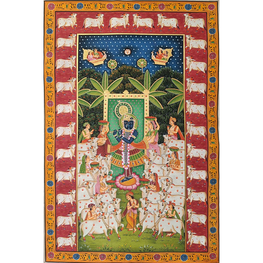 Krishna with Cows – Hand-Painted Pichwai on Cloth