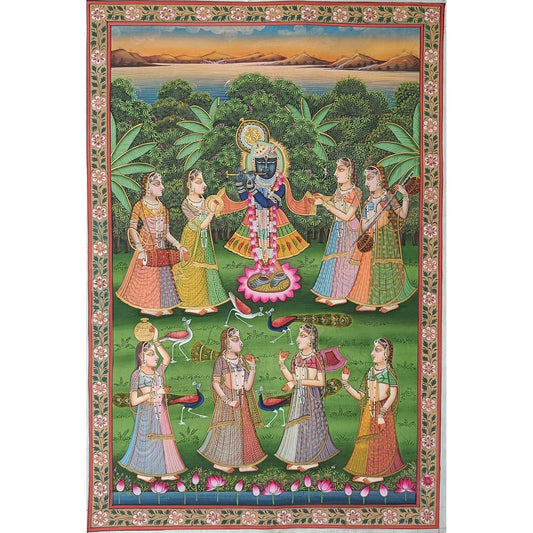 Divine Krishna Raas Leela Pichwai Painting – Hand-Painted