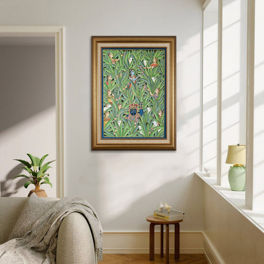 Krishna Amidst the Forest – Hand-Painted Pichwai on Cloth (2×3 ft)
