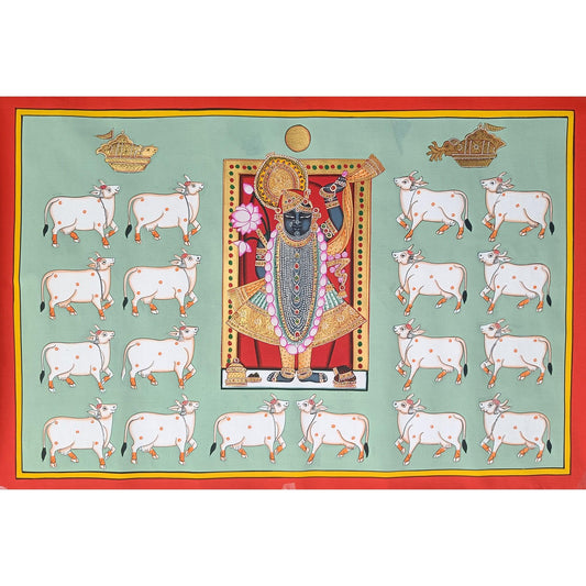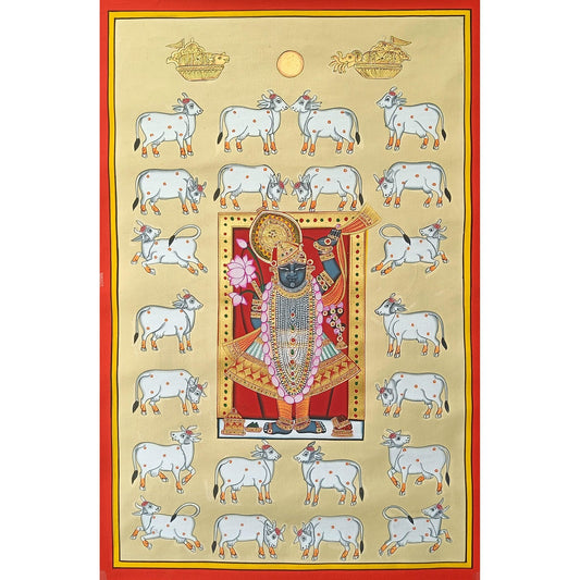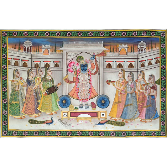 Shrinathji Darshan Pichwai Painting With Peacock Border