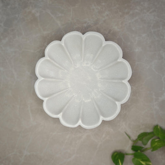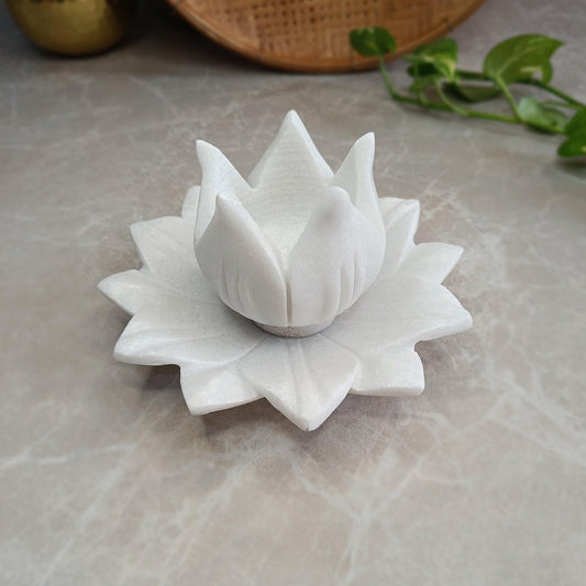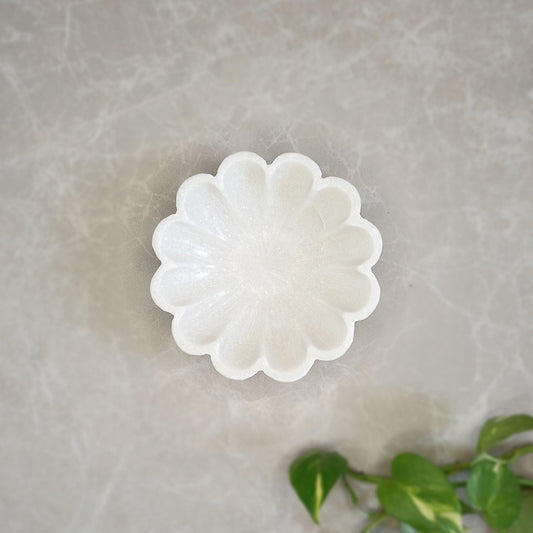 Craft a perfect table setting with a marble urli, delicate candle holders, a bold brass dhuni, and colorful pichwai coasters.